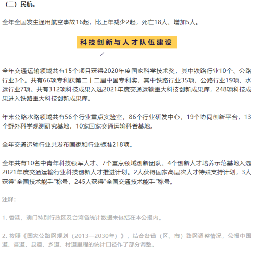 2021年交通运输行业发展统计公报