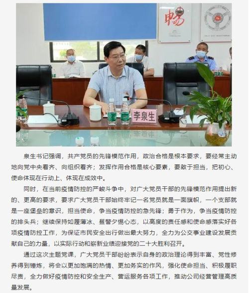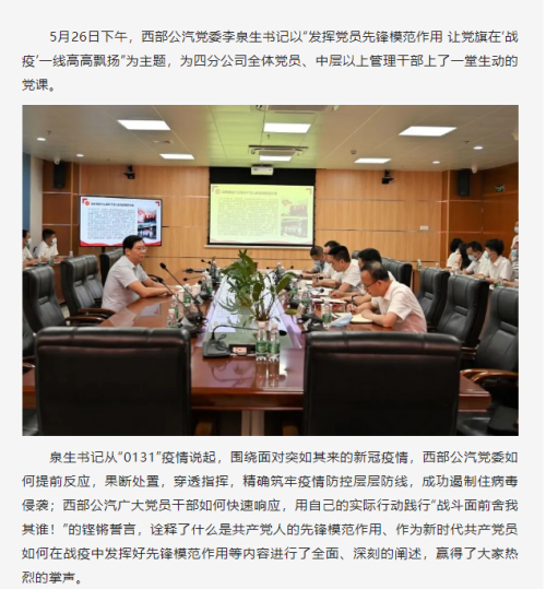 发挥党员先锋模范作用 让党旗在“战疫”一线高高飘扬——泉生书记为四分公司广大党员干部讲党课