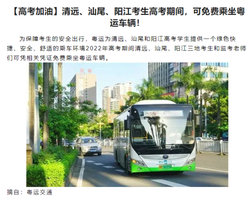 广东公交助力高考,愿你旗开得胜,马到成功!