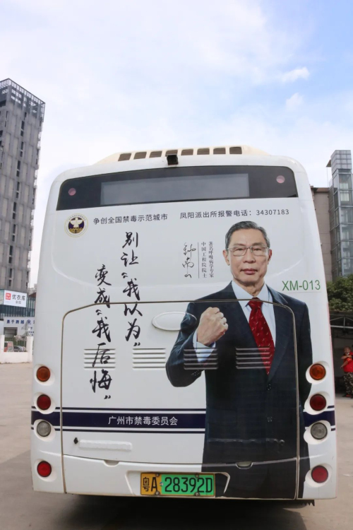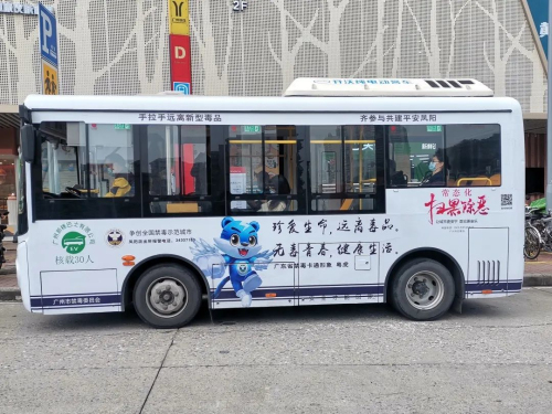 “禁毒反诈专线”便民车的外车车身部喷绘醒目的“珍爱生命,远离毒品。无毒青春,健康生活”等禁毒宣传标语和涉毒举报电话,以及广州市禁毒宣传形象大使钟南山院士、广东省禁毒卡通吉祥物“粤虎”的宣传照,同时融合了防范诈骗、扫黑除恶等平安建设元素,内容通俗易懂,贴近生活,以图文并茂的形式呈现禁毒、防诈、扫黑除恶的政策和知识,提升广大市民“抵御毒品,从我做起”的意识,倡导广大群众为构建平安和谐的社会环境贡献自身力量。