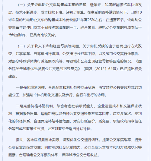 财政部《关于<延续新能源公交车运营补助政策建议>的答复》