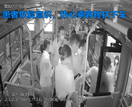 约10分钟后,车辆到达佛山市中医院急诊门口,此时,发病男乘客已恢复意识,热心乘客一起扶着男子下车送进急诊大楼。看到医护人员接诊后,黄娇娇才安心回到车上继续营运。
