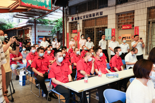 紧接着,活动进入了今天最重要的一个环节。佛山市总工会党组副书记、常务副主席蒋庆、佛山市交通运输局党组成员、副局长庄儒耀、佛山市南海区总工会党组成员、副主席沈海泱、佛山市南海区交通运输局党组成员、常务副局长孔小虎、广州巴士集团有限公司副总经理王军、佛山市南海区疾病预防控制中心健康教育和科教信息股股长温彩银、佛山市公共交通管理有限公司党总支书记、南海分公司总经理陈鹏凯、佛山市南海区桂城街道总工会副主席朱秀娟、佛山市南海区交通运输协会会长、佛山市南海佛广交通集团有限公司党总支部书记、总经理陈清华、佛山市南海区交通运输局桂城交通服务所所长谭伟龙共同为“户外劳动者工会爱心驿站”、佛山市南海区“职工·舒心阁”和“健康小屋”进行揭牌,开启幸福时刻。