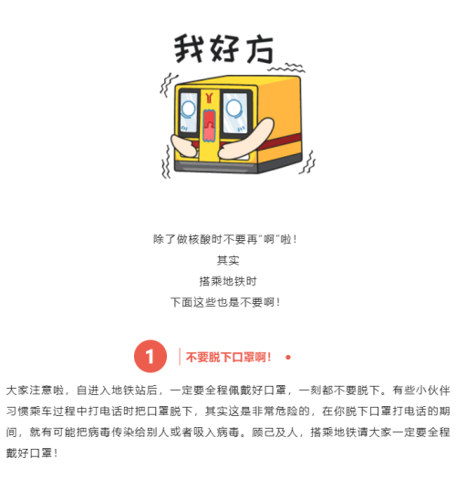 除了做核酸时不要再“啊”出声,这些搭地铁的行为也要不得
