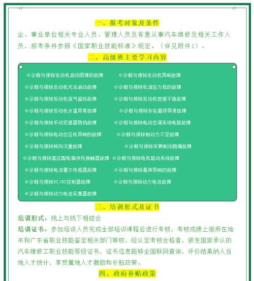 【招生】汽车维修工职业技能等级培训(三级/高级班)