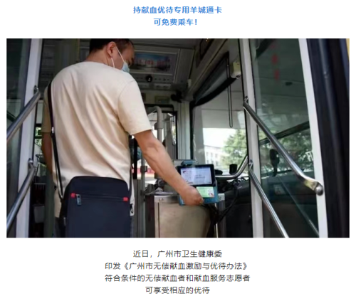 【免费乘车】持广州市无偿献血优待证(A)可免费搭乘公交!