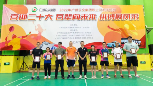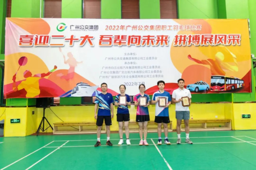 2022年8月6日,广州公交集团“喜迎二十大 吾辈向未来 拼搏展风采”职工羽毛球比赛圆满闭幕。18支代表队、250多名选手经过3周的激烈比赛,分别决出甲、乙两组混合团体赛的冠亚季军。集团党委副书记、副董事长、总经理李小军,副总经理刘伟,副总经理林殿盛,副总经理李超恒参加活动及为获奖队伍颁发荣誉。