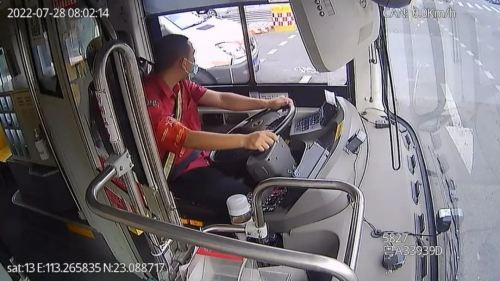 7月30日中午,25路线钟国威车长驾车行驶至同福东路同庆路交汇处等待交通信号灯。