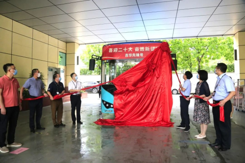“吉华先锋号”主题车厢,特地选定了客流大、覆盖面广的M346线路,车身两侧和车尾分别被印上了“喜迎二十大 奋进新征程”和“党建吉华、文化吉华、科创吉华”等文字,激发市民乘客的爱党爱国热情。