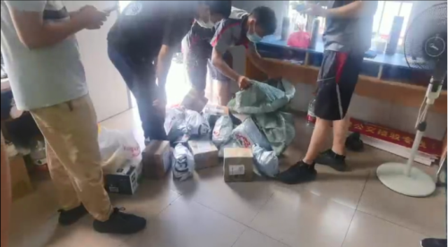 发现原来是快递公司的一编织袋快递