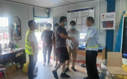 快递小哥握着阮红亮师傅的手