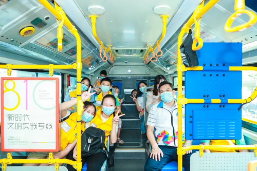 “车身好好看,有麒麟呢!”“这里好多公交文明主题绘画”……值得一提的是,不少学生在刚上810新时代文明实践专线时,就被车厢内外的特色元素所吸引,发出阵阵惊叹声。