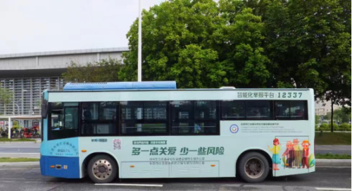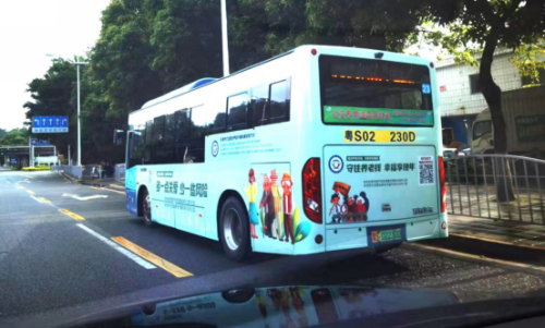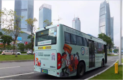 “东莞养老反诈号”主题巴士正向社会传递出关心关爱老年人正能量,承载着东莞打击整治养老诈骗专项行动的重要任务驶向市民身边。
