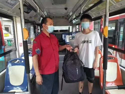 与此同时,完成当班营运任务后的263线车长丘车长,对车厢进行检查时,发现车厢座位上有一个乘客遗落的书包,包内装有入取通知书、毕业证书等重要证件。但由于自己接下来还有营运任务,于是丘车长将书包交到站务室,待失主前来认领。根据站场内工作人员指引,小姜同学便来到小塘公交枢纽站咨询失物事宜。经过身份核对,小姜同学顺利领回自己丢失的书包,袋内资料完整无缺。小姜同学表示因为丘车长及工作人员帮助才没有错过开学报到,要向他们学习。