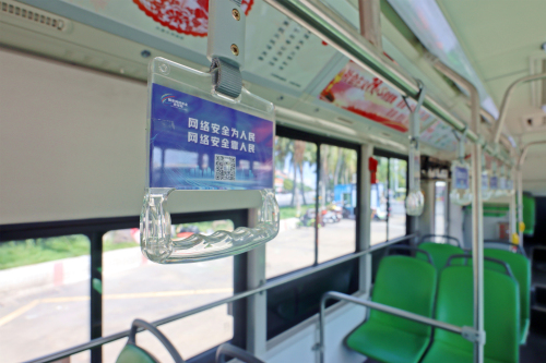 同时,车内显示屏滚动播放2022年国家网络安全宣传周微视频,宣传网络诈骗案例、防诈技巧、抵制网络暴力等知识。每个座位放置网络安全宣传折页,座椅背后贴着“网络安全为人民 网络安全靠人民”宣传画。市民可通过扫描宣传画上的“网信湛江”二维码,学习网络安全知识,增强网络安全意识。