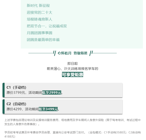 【驾校招生】恰逢双节,不仅有金牌教练还有钜惠