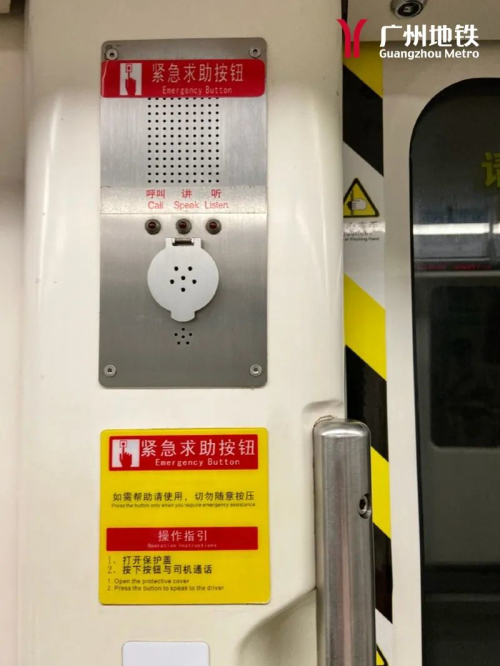 车门边上有“紧急求助按钮”和“紧急开门装置”。每节车厢的车门边上设置有“紧急求助按钮”和“紧急开门装置”。