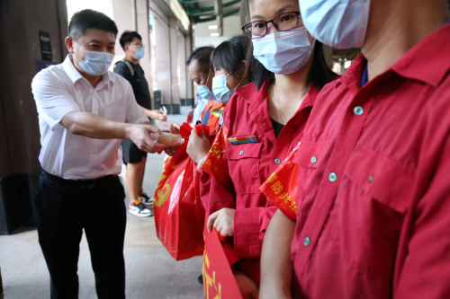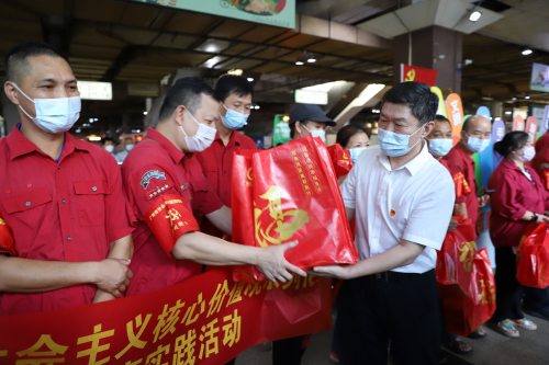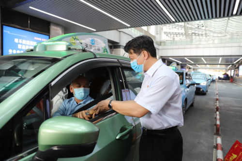 9月6日下午,广州巴士集团本部党总支部和市数据中心党支部的20名党员志愿者们分为三组,分别向站场工作人员、公交车司机、出租车司机等一线交通工作者派发中秋慰问品。活动中,志愿者们热情高涨、相互协作,向来往的司机师傅们送上节日祝福和慰问品。收到慰问品的师傅们脸上洋溢着幸福的笑容,并向志愿者们表示真诚的感谢。