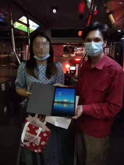 据了解,刘女士的平板电脑于当天早上不慎将平板电脑遗落在831线公交车上。被当班公交车长黄志敏到达总站后,执行一圈一检时拾到,当时便立即致电车队长报备,并将其交给了当班调度员妥善保管,等待失主认领。