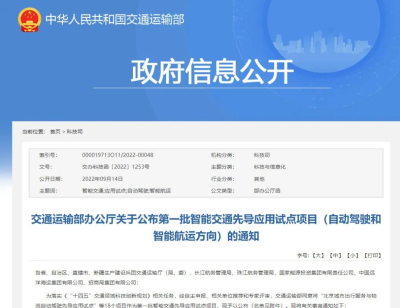 近日,交通运输部办公厅发布关于公布第一批智能交通先导应用试点项目(自动驾驶和智能航运方向)的通知。广州城市出行服务自动驾驶先导应用试点(下称“试点项目”)入选交通运输部第一批智能交通先导应用试点项目。