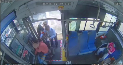 女孩终于安全地坐上了公交车
