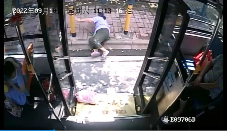 在当天的11:13分,当车辆到达叶家村站,等罗振星把车停稳后,林婆婆便一手拄着一根木棍一手提着一袋东西从后门下车。但走下车门位置的台阶时,本来腿脚就有点不便的她因左脚一崴,身体重心不稳,不小心摔倒在公交车与站台之间的地面上。
