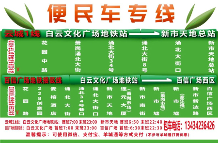 近两年,我司收到百信广场等商业中心站点周边群体市民千份意见及建议,希望解决商业圈与地铁站接驳不便利的问题。我司组织专题调研,认真研究,积极协调,制定方案。从9月28日起,将试运营“云城1线”支线(百信广场地铁接驳循环线),从白云文化广场地铁站至百信广场西区,途径新市天地、连元大厦(萧岗市场)、新市墟、新市新达路等站点,广大市民群众前往百信广场等商圈娱乐休闲购物将更方便。