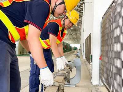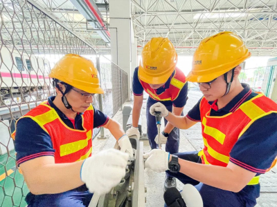 现在是四号线南沙停车场的接触轨,我们会通过现场测量调整接触轨的一些定位高度、偏移值,然后紧固我们所有零部件的螺栓,测试绝缘部件,还有电缆的绝缘性能。最后我们还会巡视设备的运行状态,确保我们接触轨的系统设备是满足我们安全可靠供电的。通俗一点来说,我们就是地铁接触网的“医生”。