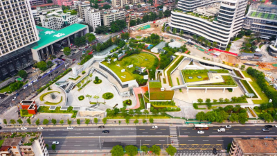 建设下沉式广场、公园绿地