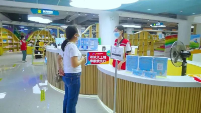 ▲学生志愿者在龙岗文化中心图书馆开展服务