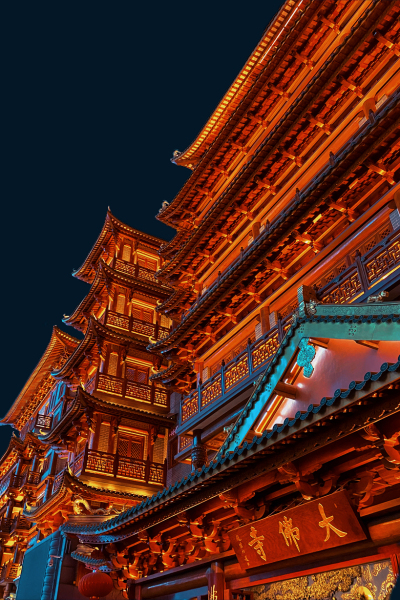 再来说说公园前地铁站,这是一个古典与现代融合得恰到好处的地方,坐落在北京路步行街的大佛寺是它的一大亮点,是繁华闹市中的一缕清净,尤其到了晚上时,当大佛寺的灯全部打开时,更是显得恢宏大气,惊艳不已,仿佛置身于古老的时光中。