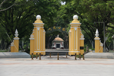 从中山纪念堂后面的百步梯上山,周围的树木参差高耸,更映衬出一股庄严肃穆的气息,于是,我们便来到了中山纪念碑,碑身全部用花岗岩砌成,高37米,碑底为方形,向上逐渐变小而尖,碑内的梯级回旋至顶。孙中山纪念碑和中山纪念堂都在广州传统中轴线上,并且连成一体,气势磅礴,是广州近代的城市标志。