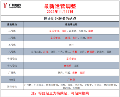 有关广州地铁运营调整的信息,大家可关注@广州地铁 官方微博、广州地铁官方微信及APP发布的信息,或可留意车站告示及广播,若有最新运营调整我们会及时发布告知。