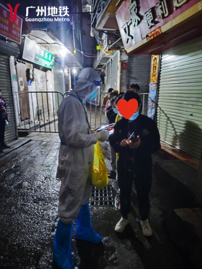10月31日凌晨2点,他们拖着沉重的身体,把最后一箱物资放在楼梯口。夜已深了,此时已经在户外连续工作了十多个小时的他们,终于结束了第一天的志愿服务工作。这是一群来自广州地铁的“99后”,夜灯下身着防护服的他们格外耀眼,年纪最大的只有23岁。其中有6人还是今年刚入职城际运营公司的新员工,对他们来说,在这个特殊时期有了一个新的身份——抗疫别动队队员。