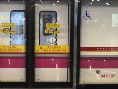 线网车站对应站台门上张贴了无障碍标识