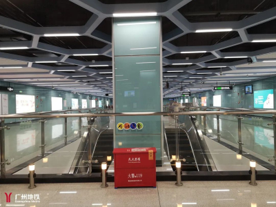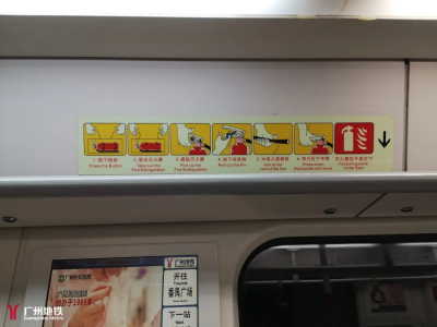 在车站内发现火情时,应第一时间通知车站工作人员,同时按下报警按钮,并听从车站工作人员的指引有序安全疏散,疏散时大家可留意立柱或墙上的安全出口标识。