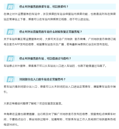 【广州地铁】车站停止对外服务,大家关注的问题在这里