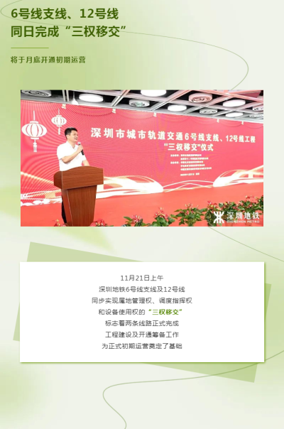 【深圳地铁】6号线支线、12号线完成“三权移交”!