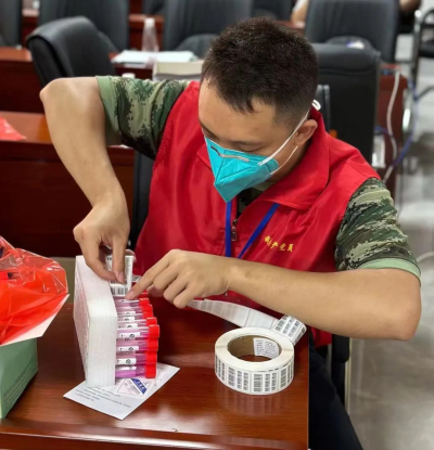 当日晚上18时,接到一项分拣配送爱心包20000份的紧急任务,大家立即前往物资储藏点分拣配送爱心包。“我们难,群众更难;我们多送一份,群众就能早一点拿到物资吃上热饭。”