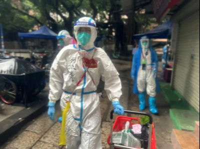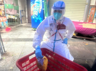 当好社区物资“送货人” 风雨无阻”家住海珠区的何永盛也是首次进入龙潭片区,龙潭作为高风险区域,城中村涉疫片区存在的不确定性给抗疫工作增加了许多难度。但何永盛很快就适应了高强度的支援节奏,“大白”服一穿上就忘了工作时间,经常忙到下午4点才吃上午饭,但他从不抱怨。尤其是自进驻以来,广州进入湿冷天气,降雨频繁,他穿着雨衣穿梭于狭窄潮湿的巷子为居民配送物资时,只能找角度透过起雾的防护面罩看清配送信息,这无疑为支援工作增加难度。但他仍然细心守护每一份物资,甚至是一张配送单都尽量不被雨水打湿,按时将物资配送至居民手中。他说:“我们配送的不仅是物资,还是居民的一份希望”。截止目前,他已连续支援7天,服务时长达80小时,累计派发生活类、药品类物资约700份,服务群众逾700人次。
