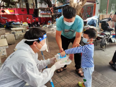 10月26日早上,公交站场管理公司职工肖烽和同事们一如既往到所支援的白云区夏茅村第八网格处开展防疫工作,正值家长带着小朋友有序到楼下做核酸,细心的肖锋留意到小朋友都是睡眼惺忪的状态,询问之下得知还没吃早餐,受管控影响,一日三餐均需网上订餐再由志愿者配送,用餐时间难免受影响,热心的肖烽便自发拿起热乎乎的早餐送给小朋友,“来,小朋友这个给你,我们还有些单位准备的干粮,街道给我们配的早餐有牛奶,希望小朋友们每天营养管够。”肖烽说。这已经是他第二次组团参与支援白云区疫情防控,在完成夏茅村的支援任务后,他又主动请缨转战支援石井街道,累计坚守15日,用实际行动展现交通站场人的责任与担当。