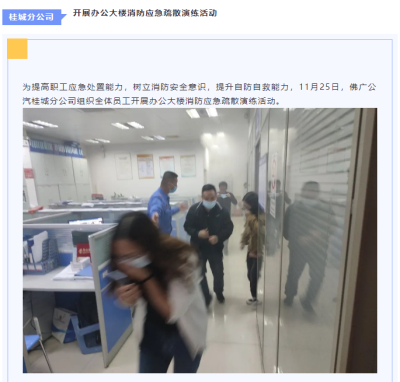 【佛广公汽】开展办公大楼消防应急疏散演练活动