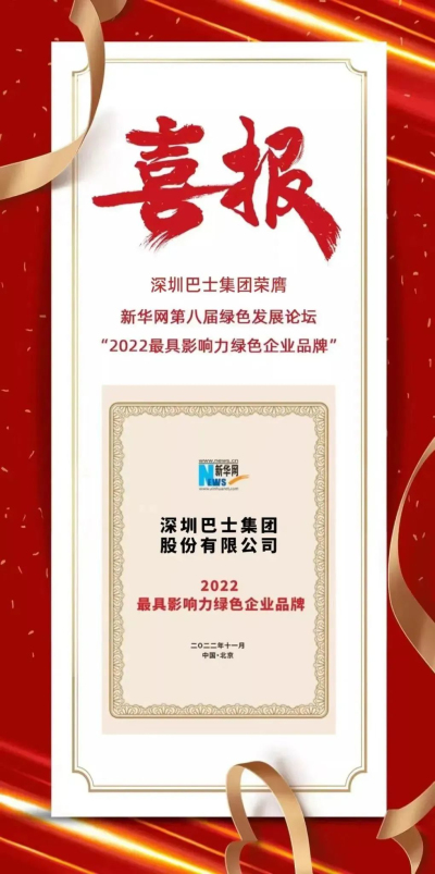 由新华网主办的第八届绿色发展论坛在北京顺利闭幕。深圳巴士集团推送的《践行双碳 “六星”行动,打造行业“五星”标杆》行动方案入选“2022绿水青山就是金山银山实践典型”案例,并成为“2022最具影响力绿色企业品牌”之一。