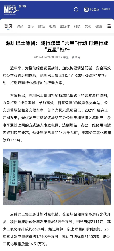 深圳巴士集团坚持绿色低碳可持续发展的原则,力争打造 “绿色零碳、节能高效、智慧运营”的数字化充电站、公交运营场站和公交候车亭。