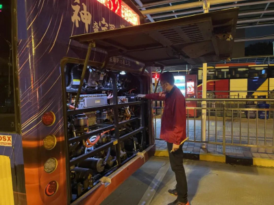 在寒冷天气下,车辆发生故障的概率会比平时高一些,所以在每一辆公交车发车前,黄国进和关志坚都会带领当班车长对车辆状况再次检查一遍。