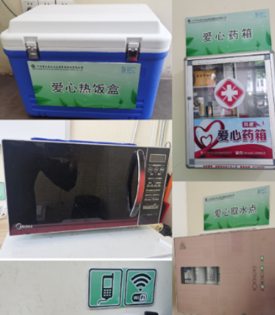 公交站场管理公司在各重点公交站场内以“党员先锋岗”“青年文明号”、“学雷锋”志愿服务岗及爱心驿站等,作为“暖冬”服务载体,为过往市民、坚守岗位的户外劳动者提供热水器、热饭盒、微波炉、药箱等,为市民提供安全、便捷、温馨的出行服务。