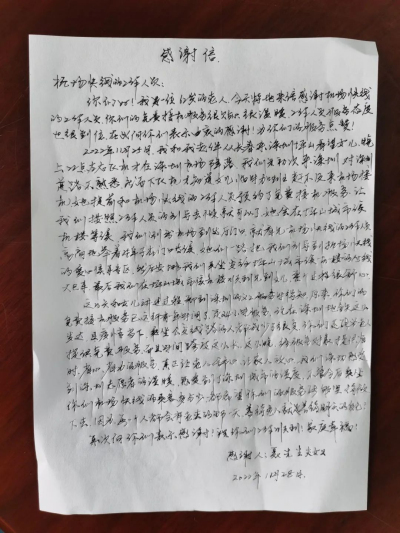 寄来手写长信表达对深巴的感谢之意