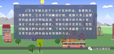 公交车驾驶员是个十分辛苦的职业。春夏秋冬,风霜雨雪,公交车不间断地行驶,就像人身上血管里的血液在不停地流淌,穿行在城市的大街小巷,满足了市民出行的需求。驾驶员的辛苦背后,往往伴随着各种疾病的纠缠,下面为大家科普一下驾驶员常见的几种疾病及有效预防方法。