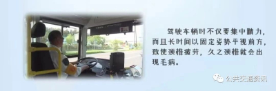 驾驶车辆时不仅要集中精力,而且长时间以固定姿势平视前方,致使颈椎疲劳,久之颈椎就会出现毛病。建议停车休息时,司机最好能离开座位活动一下,并用双手揉捏颈椎两侧的肌肉,同时可做原地跳跃运动。