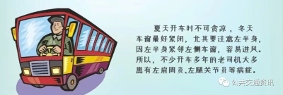 夏天开车时不可贪凉,冬天车窗最好紧闭,尤其要注意左半身,因左半身紧邻左侧车窗,容易进风。所以,不少开车多年的老司机大多患有左肩周炎、左腿关节炎等病症。